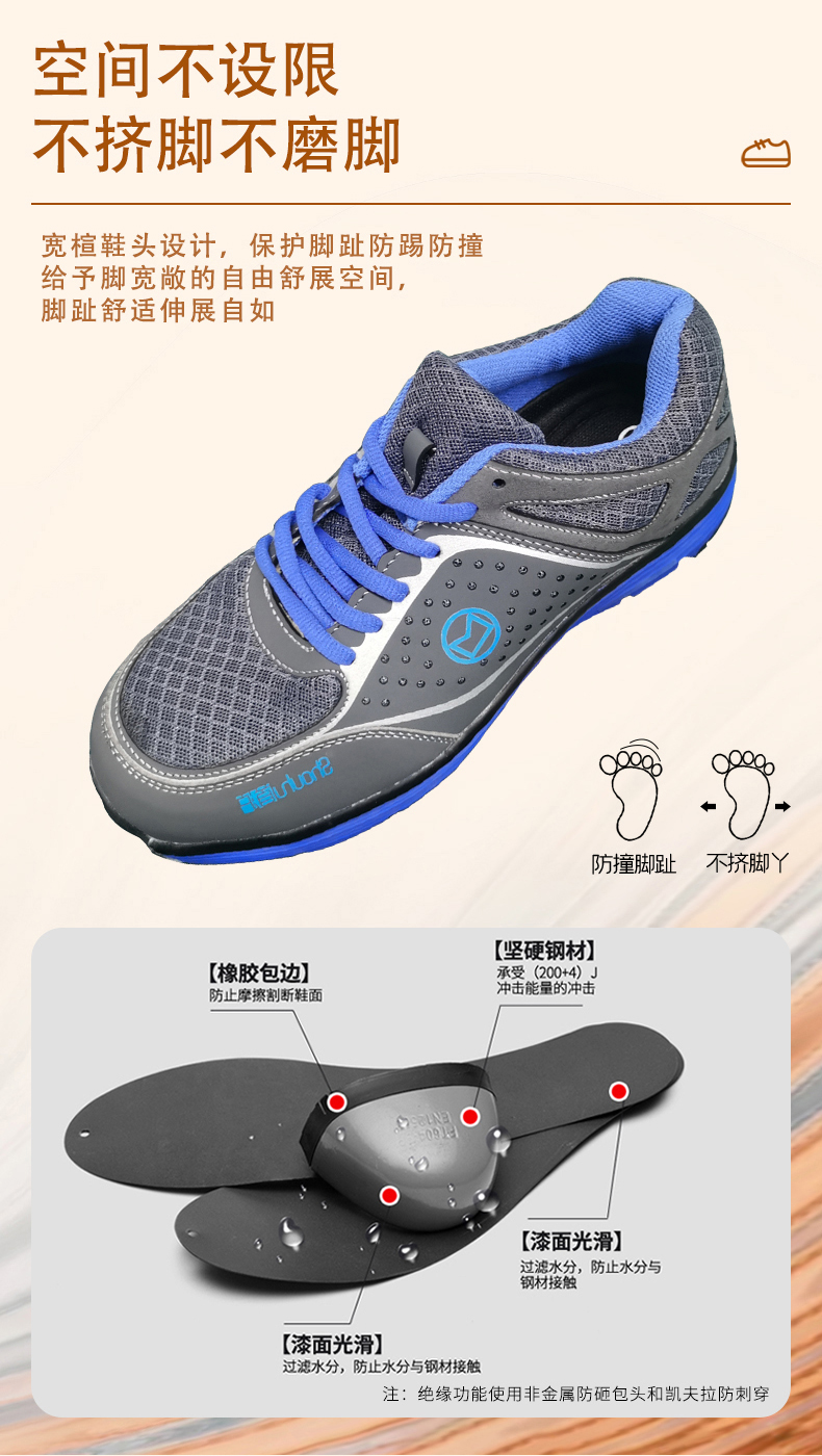 在建筑工地上做事地面上??經(jīng)常會(huì)有一些釘子之類的雜物,之前有時(shí)候沒(méi)注意還被刺到過(guò)腳??。看了這款勞保鞋這么時(shí)尚鞋底還防刺穿??,收到貨果然跟描述的一樣沒(méi)讓我失望?,再也不用擔(dān)心工作的時(shí)候會(huì)??刺傷到腳了 收到馬上穿去上班,??腳底挺軟,沒(méi)那么厚重,有點(diǎn)運(yùn)動(dòng)鞋的感覺(jué)??。然后鞋底設(shè)計(jì)的也很好??。完全符合我對(duì)勞保鞋的所有要求??,希望質(zhì)量也??很好。